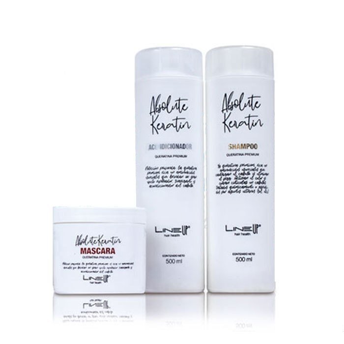 - Acondicionador Absolute Keratin (500 ml): Complementa el shampoo, proporcionando una hidratación profunda y desenredando tu cabello para dejarlo suave y fácil de manejar.