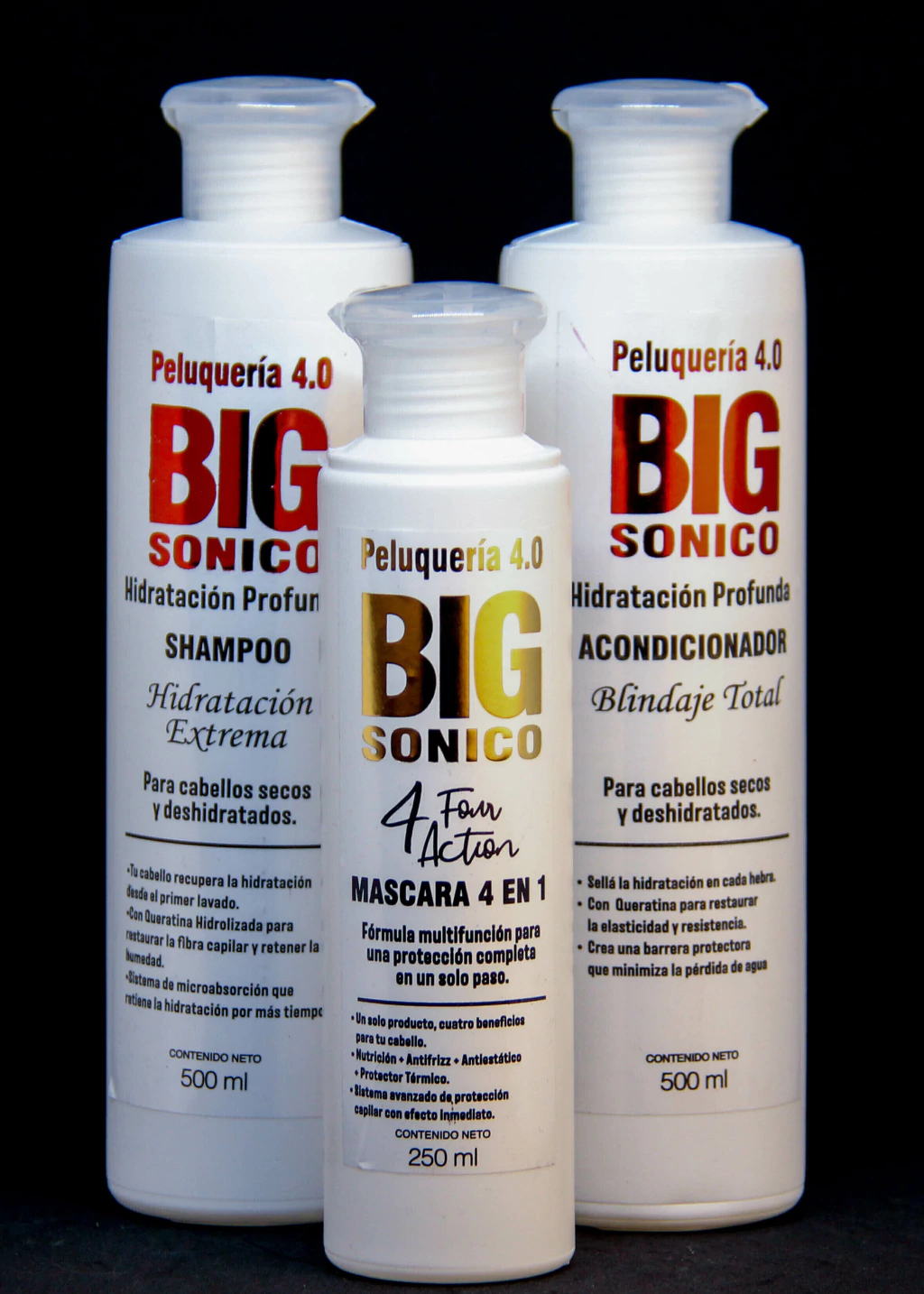 | Este combo restaura la flexibilidad y el movimiento capilar. El Shampoo Hidratación Extrema y el Acondicionador Hidratación Pura, con Queratina, aportan la hidratación esencial que devuelve elasticidad a la fibra. La Máscara 4 Four Action nutre profundamente y desenreda, facilitando el peinado y devolviendo la soltura y el movimiento natural al cabello. |