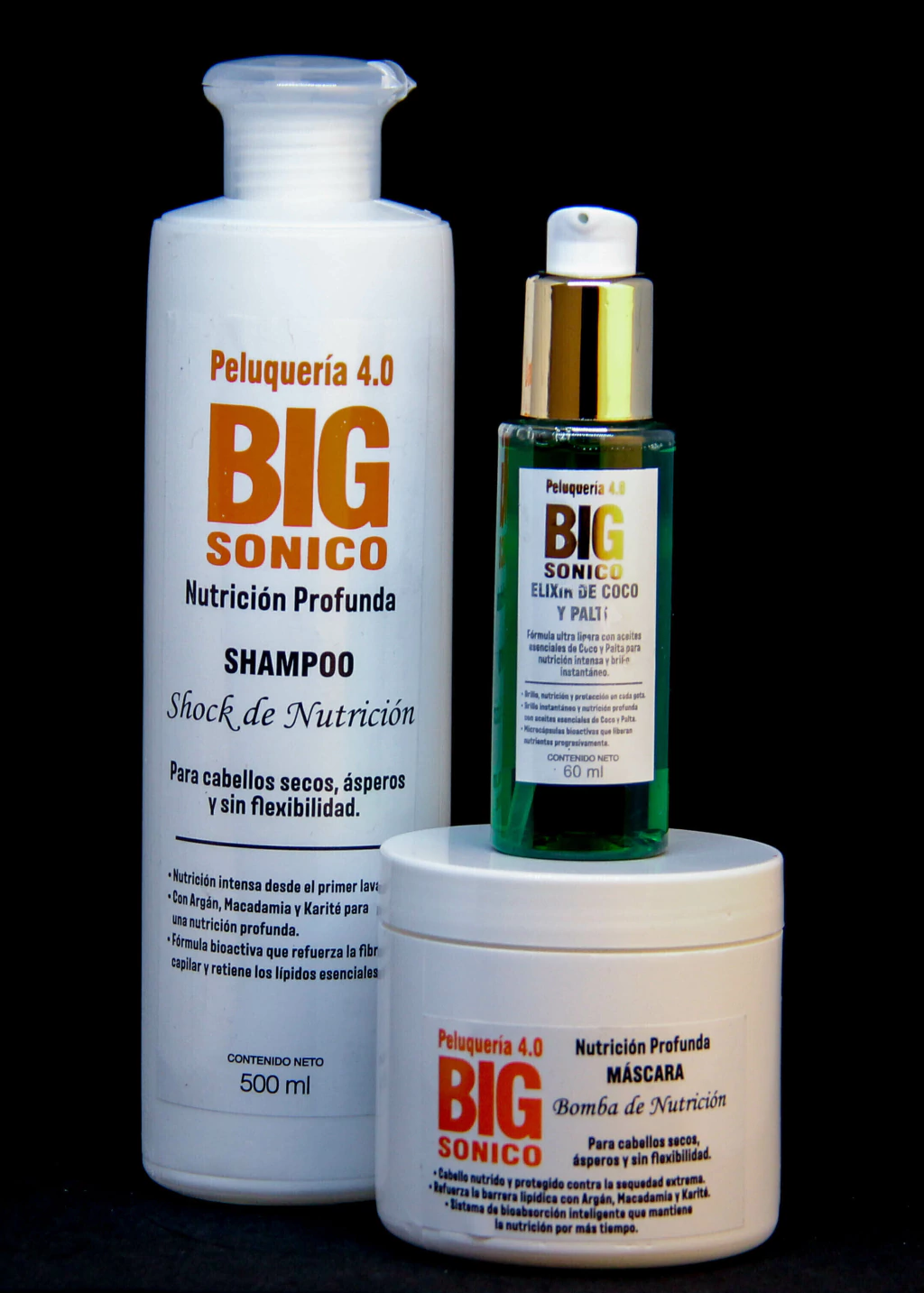 | Este combo mejora la manejabilidad y la suavidad. El Shampoo Shock de Nutrición y la Máscara Bomba de Nutrición aportan lípidos esenciales que nutren profundamente la fibra capilar, suavizando su superficie. El Elixir de Coco y Palta complementa, facilitando el desenredo y aportando un deslizamiento suave y sin fricción al peinado. |