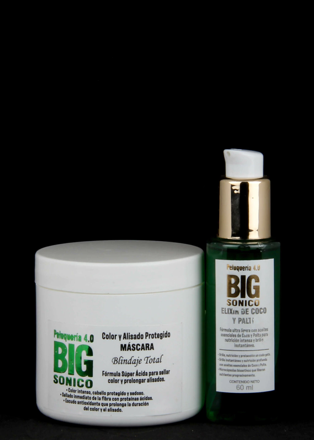 Este Combo ataca el daño en puntas abiertas de cabellos secos .la Mascara Blindaje total sella la cuticulas con su formulacion especifica.El Elixir de coco y palta nutre profundamente con lipidos esenciales,Rellenando y uniendo las puntas abiertas,La Accion conjunta previene la fragmentacion y restaura la cohesion capilar en las zonas afectadas.