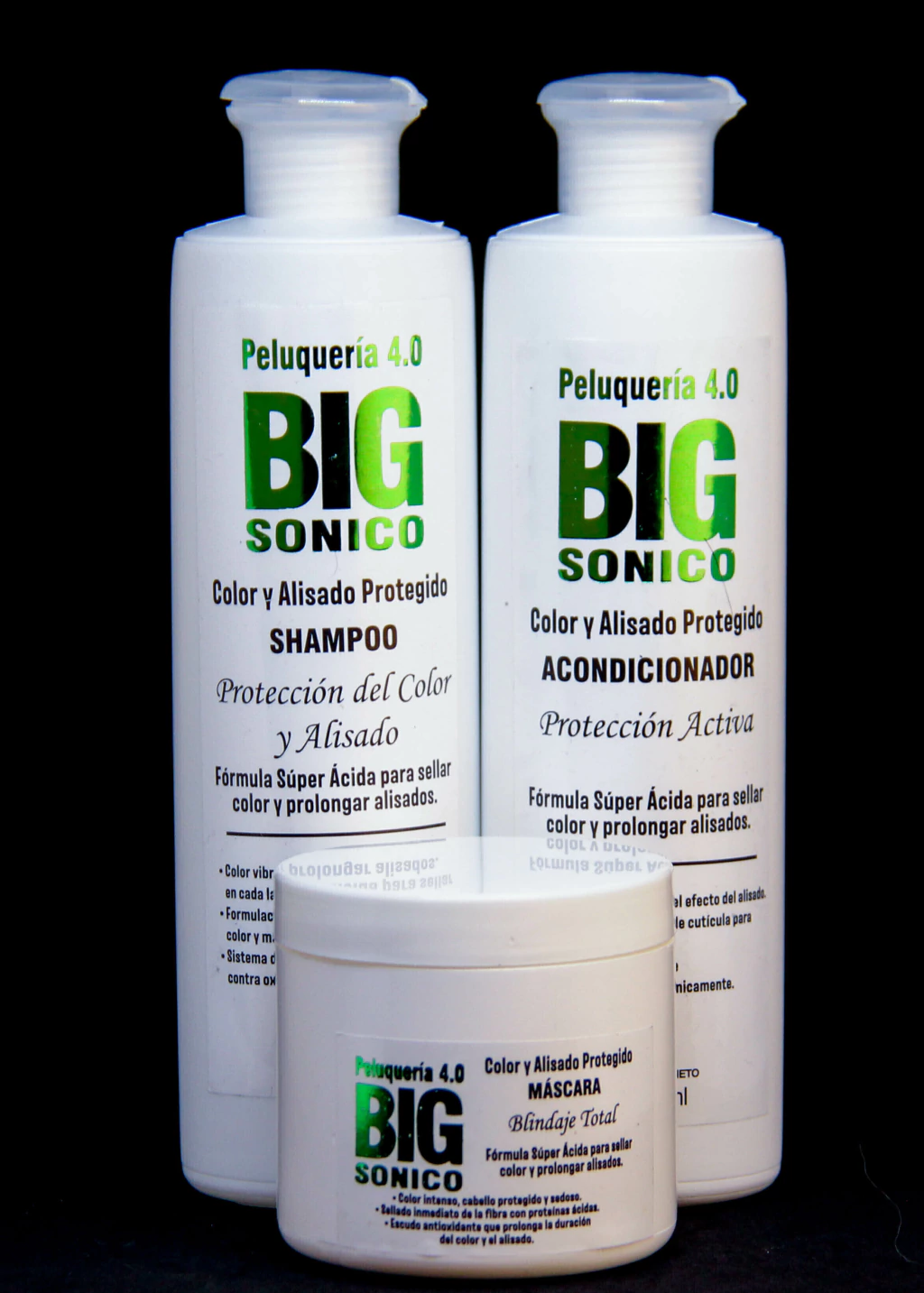 Este Combo protege la longevida y la vibracion del color.El Shampoo ptoteccion color y Alisao,con su PH balanceado,limpia suavemente sin arrastrar pigmento,El acondicionador proteccion Activa y la Mascara Blindaje total sellan la cuticula,encapsulando el color y formando una barrera contra la oxidacion y el desvanecimiento prematuro.