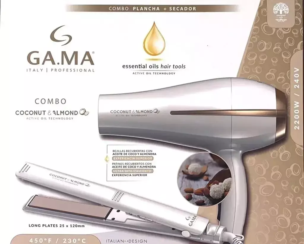 Dale a tu cabello el cuidado que merece con este exclusivo combo GAMA Coconut & Almond, que une potencia, tecnología y diseño italiano en dos herramientas imprescindibles para tu rutina de belleza.