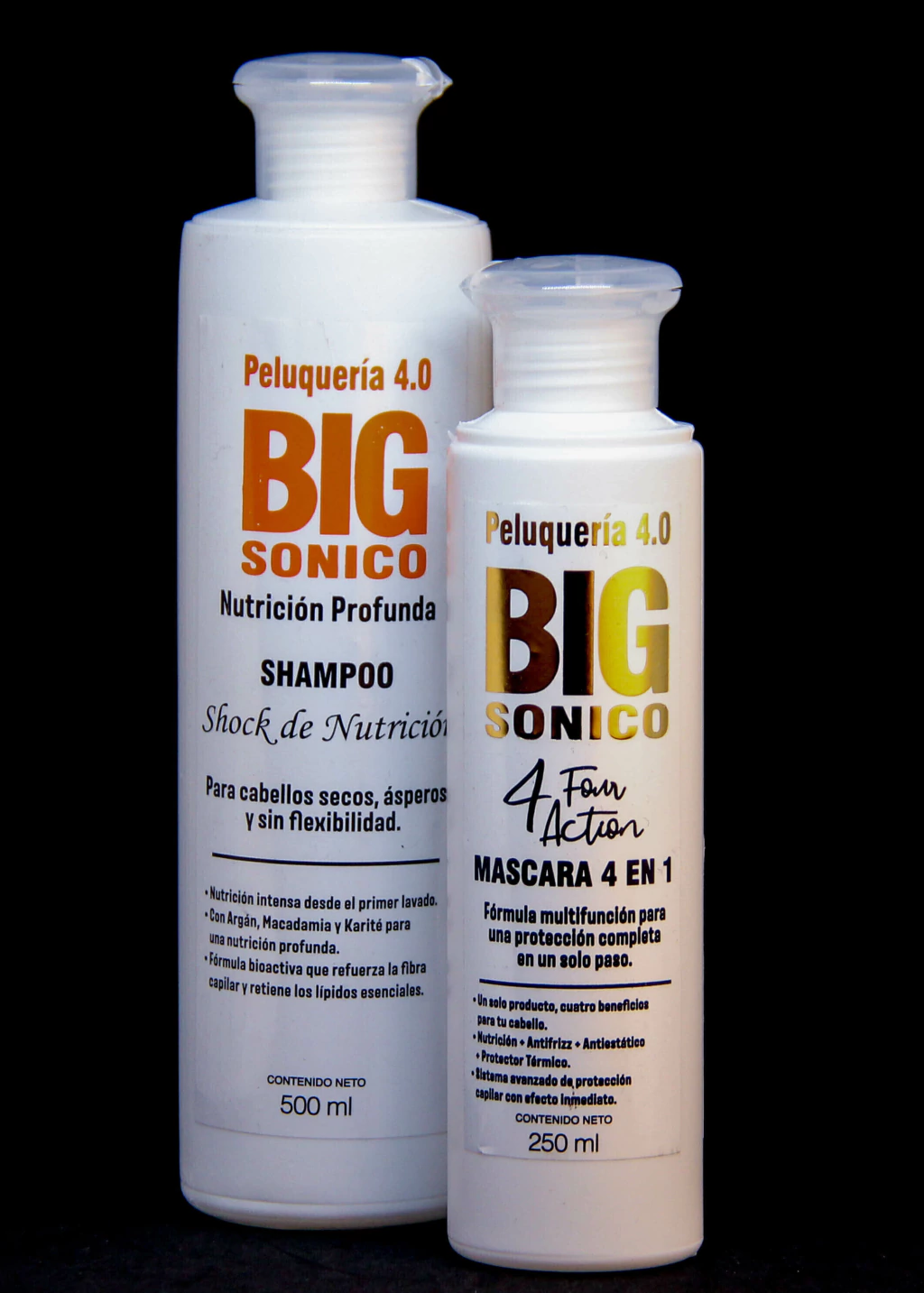 | Este combo revitaliza el cabello sin vida. El Shampoo Shock de Nutrición y la Máscara 4 Four Action, ricos en lípidos y proteínas (Espirulina), nutren y reparan la fibra capilar. La sinergia hidrata profundamente, sella la cutícula y devuelve la elasticidad, resultando en un cabello con mayor vitalidad, brillo y movimiento. |