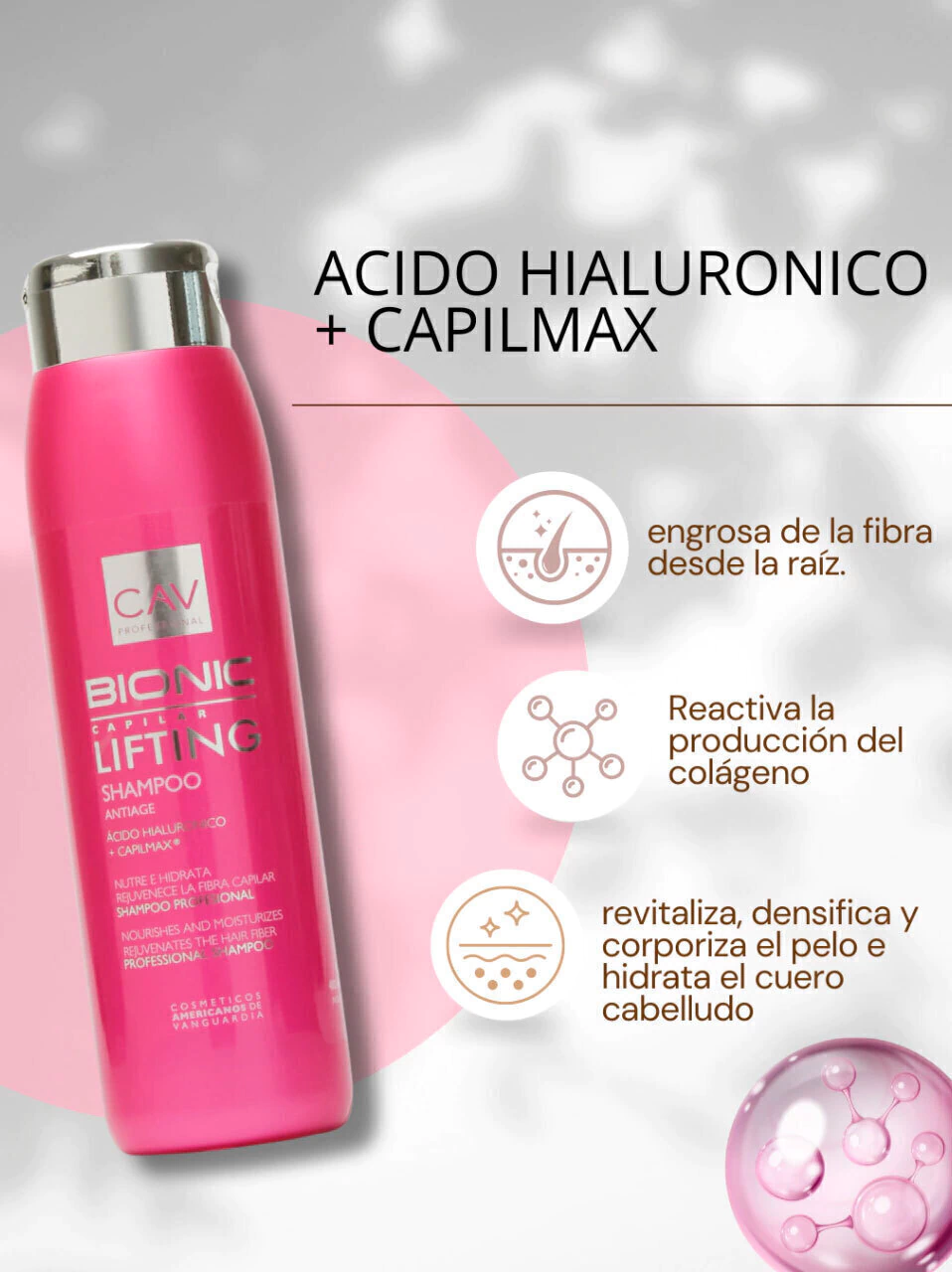 El Kit Antiage de CAV Professional es un tratamiento DERMOCAPILAR completo, diseñado especialmente para revitalizar, engrosar y densificar el cabello. Su fórmula innovadora repara desde la raíz hasta las puntas, devuelve el volumen perdido y reactiva la producción natural de colágeno, dejando el cuero cabelludo hidratado y el cabello visiblemente más joven.