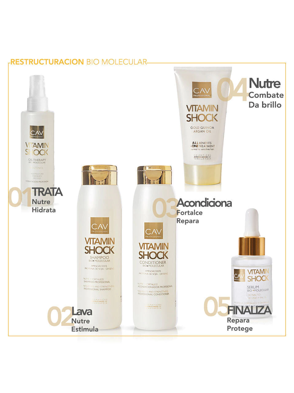 Vitamin Shock es la opción ideal si buscas restaurar, nutrir y fortalecer tu cabello desde el interior, dejándolo con una apariencia natural, saludable y llena de vitalidad.